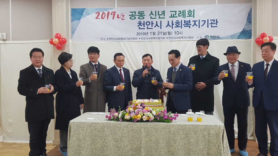 2019년 01월 21일 천안시사회복지협의회, 천안시기관연합회,천안시사회복지사협회가 주최하는 '2019년 천안시사회복지기관 공동 신년 교례회' 행사가 천안시노인종합복지관에서 성황리에 개최되었습니다.