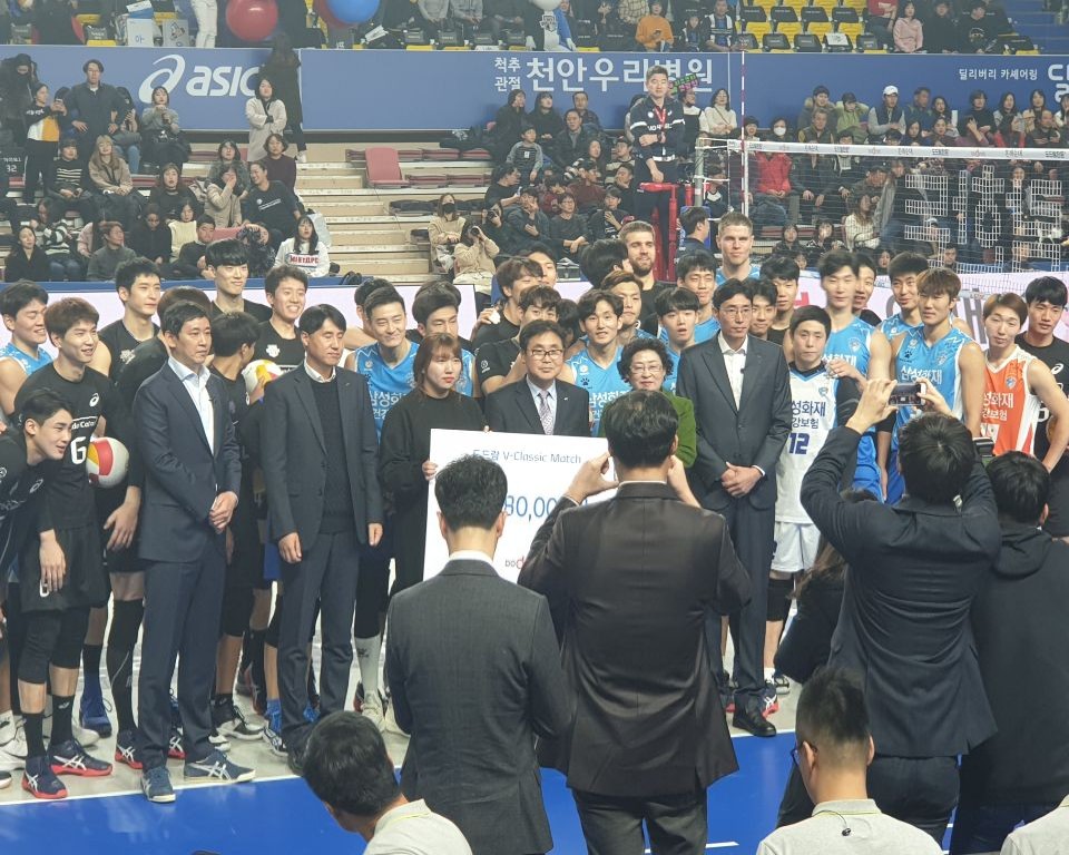 저희 천안시사회복지협의회는 많은 관심과 함께 매 경기 치열한 승부가 펼쳐지고 있는 V리그 선수들을 통해 만들어진 뜻깊은 마음을 천안시 복지소외계층에 잘 전달 하겠습니다.